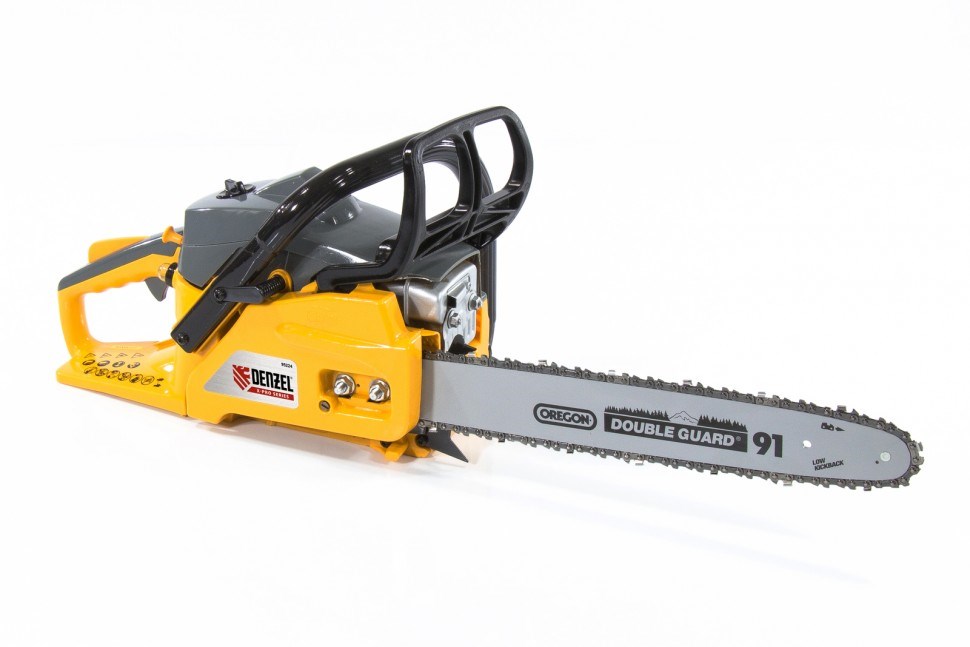 Бензиновая цепная пила Denzel GS-40 X-Pro 95224 предназначена для распиловки древесины различных пород. Модель GS–40 X-Pro оснащена шиной и цепью компании Oregon, которая является мировым лидером в производстве пильных фурнитур. Длина шины 40 см, количество зубьев 57 шт. При мощности 1,7 кВт частота оборотов двигателя составляет 9000 об/мин. Антивибрационная система, установленная на пиле, предотвращает вибрацию во время работы двигателя. Модель GS–40 X-Pro также оснащена тормозом цепи и тормозом выбега цепи. Тормоз выбега цепи срабатывает при выключении инструмента, а тормоз цепи при возникновении отскока во время эксплуатации пилы.