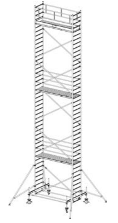 Алюминиевая вышка-тура Krause Stabilo 100 12,4м 751263 прошла проверку TUV, предельная нагрузка 200 кг/м2 (группа помостов 3) в соответствии с DIN EN 1004. Алюминиевое изделие универсального типа для рабочих высот до 14,00 м. В собранном состоянии вышка легко перемещается на базовой траверсе. Регулируемые по высоте ролики обеспечивают безопасность на неровных поверхностях. Платформы легко навешиваются между перекладинами (шаг - 25 см). Исключаются трудоемкие операции переналадки и демонтажа. При рабочей высоте изделия 7,40 м и более в комплект поставки включаются угловые опоры. Длина помоста: 3,00 м. Ширина помоста: 0,75 м.